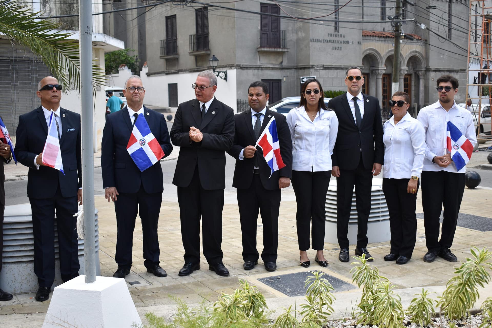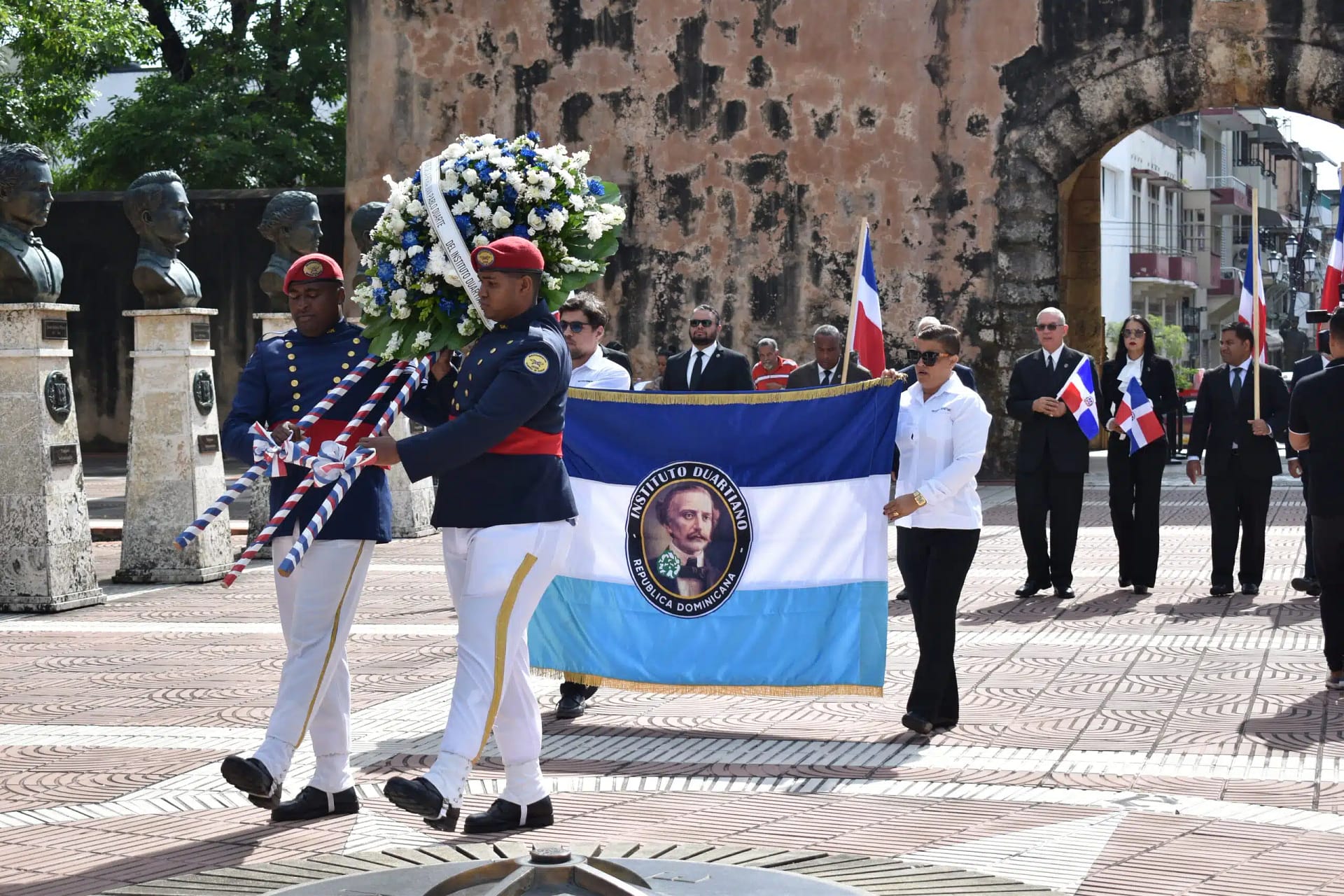 Como parte de los actos conmemorativos, se realizó una segunda ofrenda floral en el Parque Duarte de la Ciudad Colonial, seguida del enhestamiento de la Bandera Nacional en dos emblemáticos lugares: