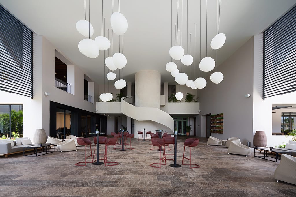 Construcción del edificio principal del hotel, áreas de servicio y administrativas, módulos de habitaciones, restaurant snack, chiringuitos y terminación de dos villas de habitaciones de cuatro niveles.
